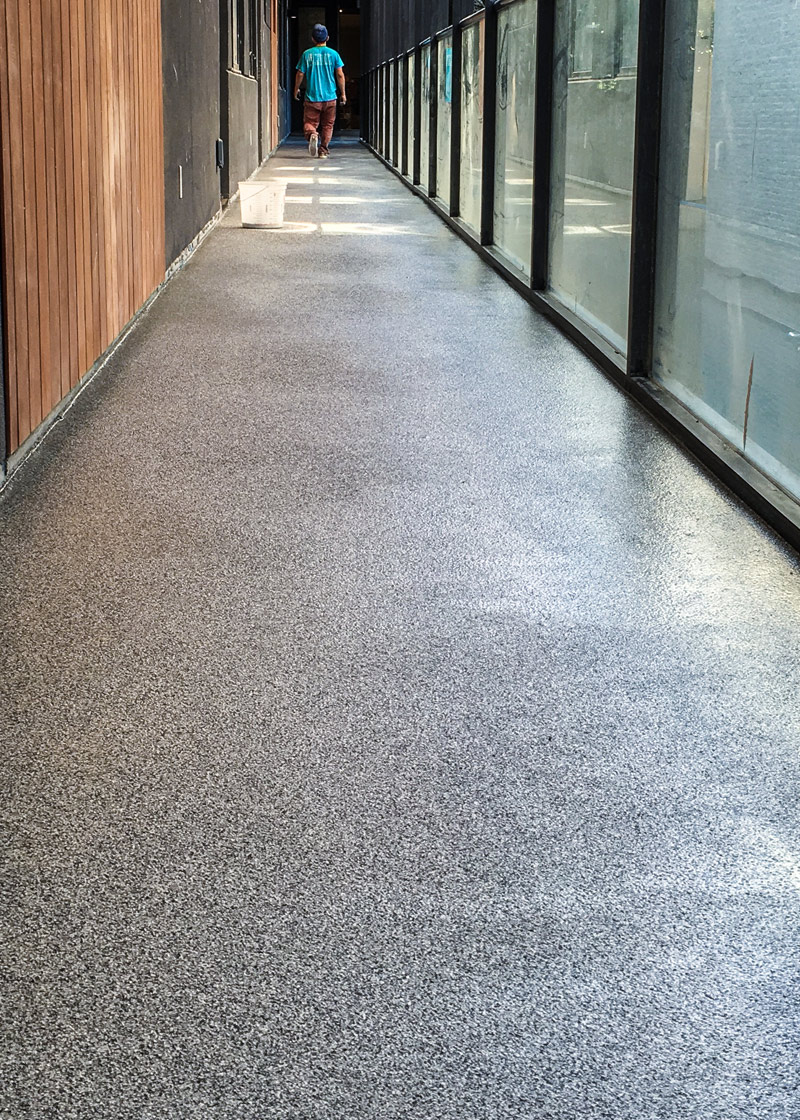 Perfect for residential and industiral flooring. Ranging from residential apartments to operating rooms and commercial kitchens. These floors are water/fire proof. If you have problems with tiles and grout, this the perfect solution. The floors can range from the undestated muted gray to a more vibrant set of coloring and texture (sand, wood particle, etc). We are a certified partner of DuraFlex and HP Spartacote.